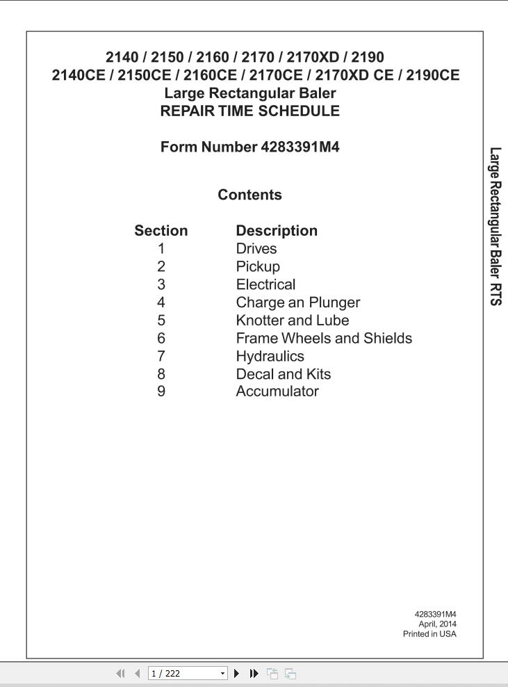 Massey Ferguson 2140 to 2190CE Repair Time Schedule 4283391M4