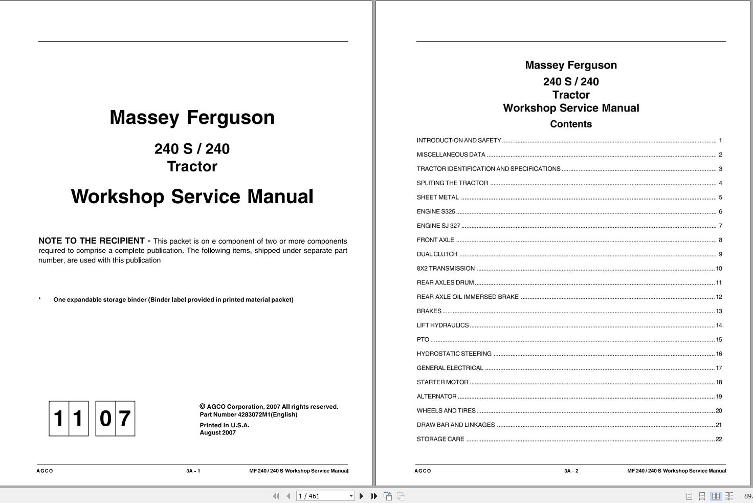 Massey Ferguson 240S 240 Workshop Service Manual
