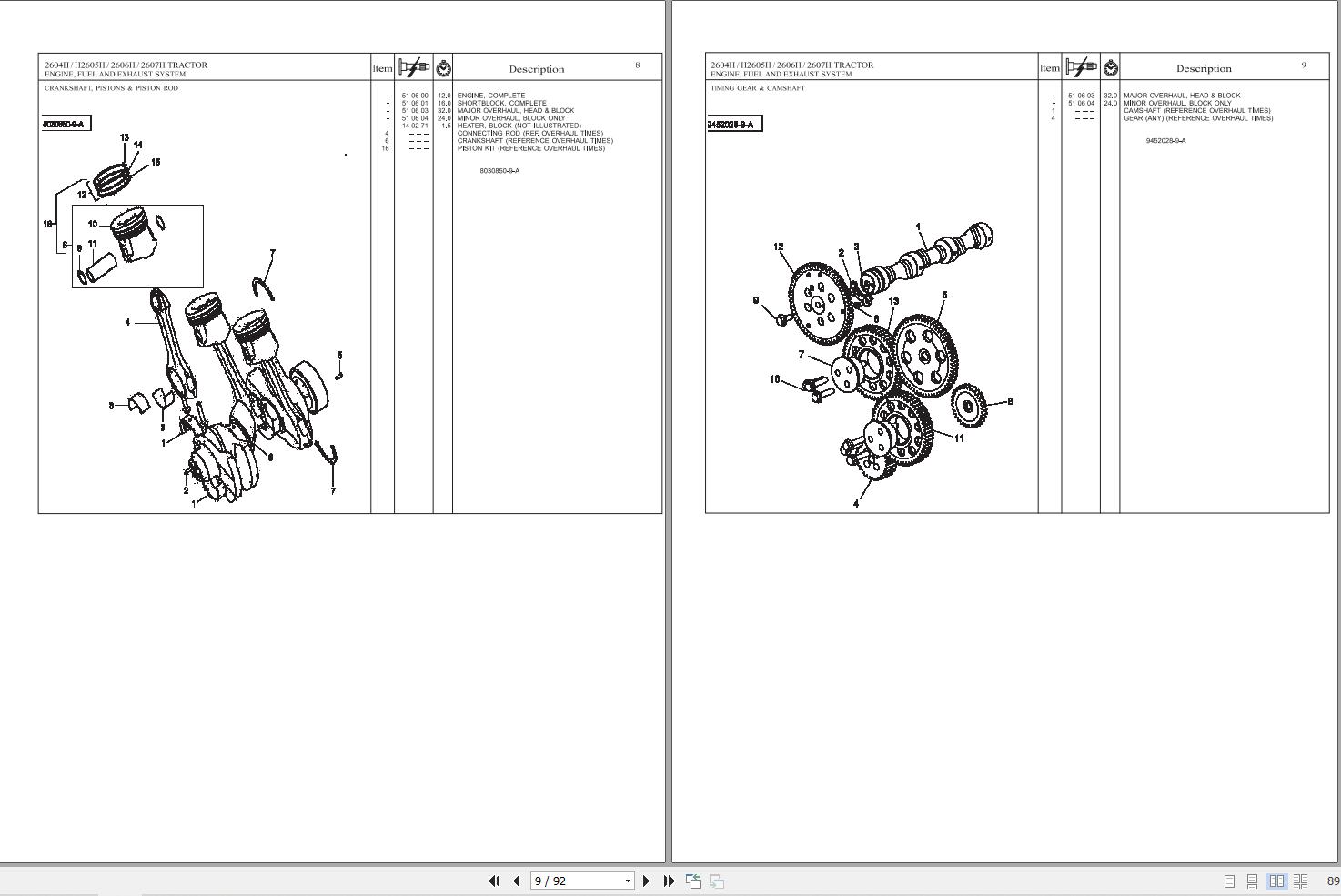 Massey Ferguson 2604H 2605H 2606H 2607H Parts Manual 4283605M1