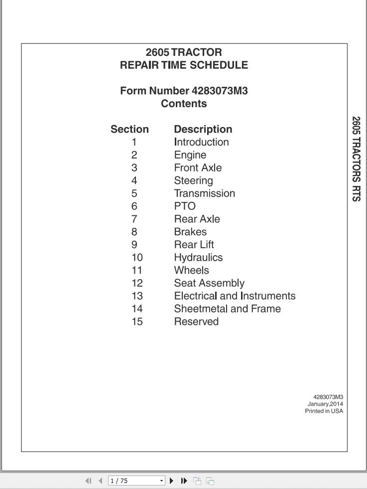 Massey Ferguson 2605 Repair Time Schedule 4283073M3