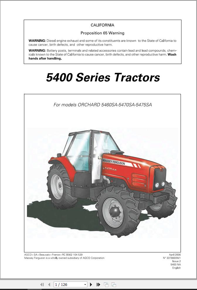 Massey Ferguson 5460SA 5470SA 5475SA Operators Manual 3378803M1 (126 pages)