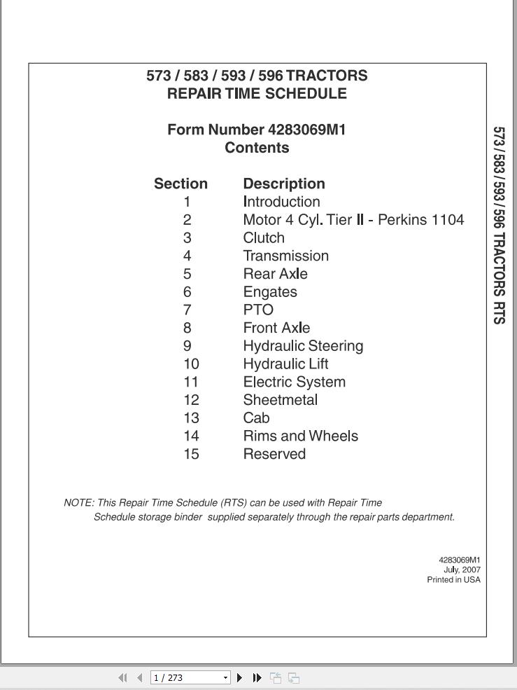 Massey Ferguson 573 583 593 596 Parts Manual 4283069M1