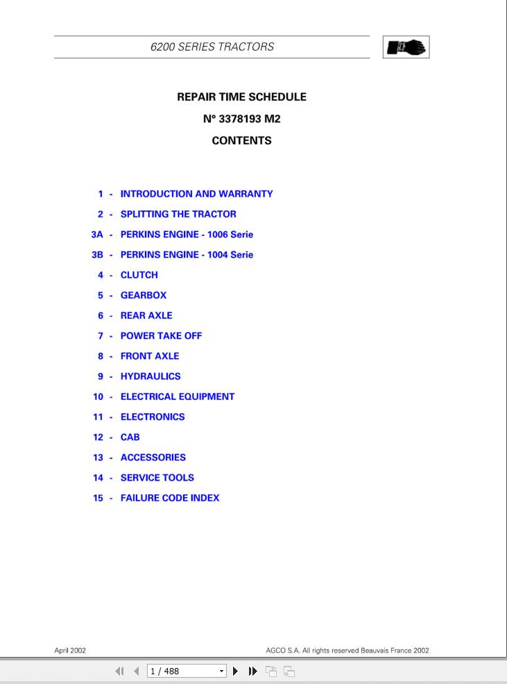 Massey Ferguson 6200 Series Parts Manual 3378193M2