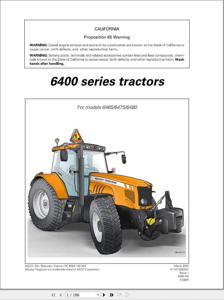 Massey Ferguson 6465 6475 6480 Operators Manual 4315582M1
