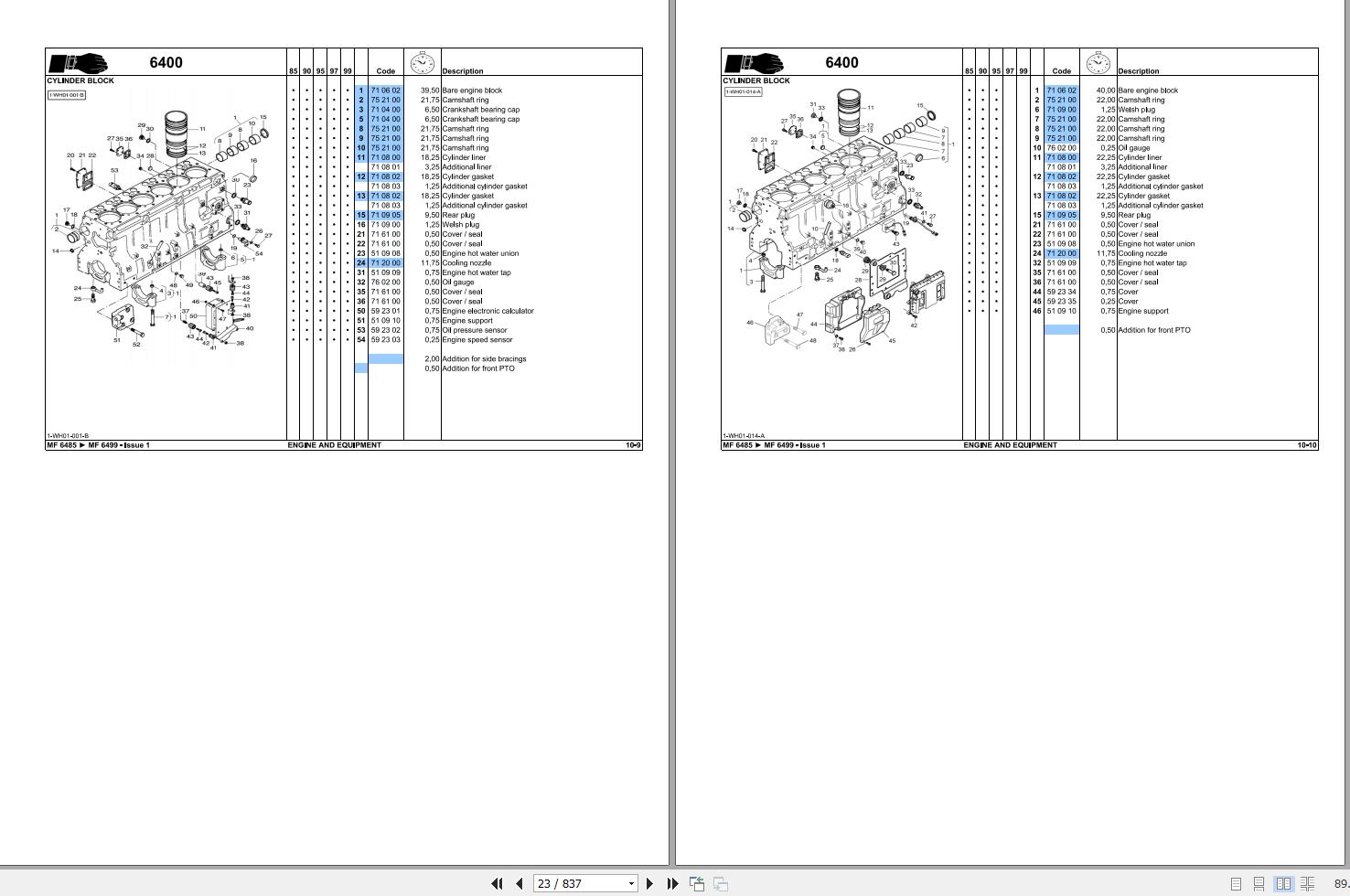 The Bookmarks of Massey Ferguson 6485 to 6499 Parts Manual: