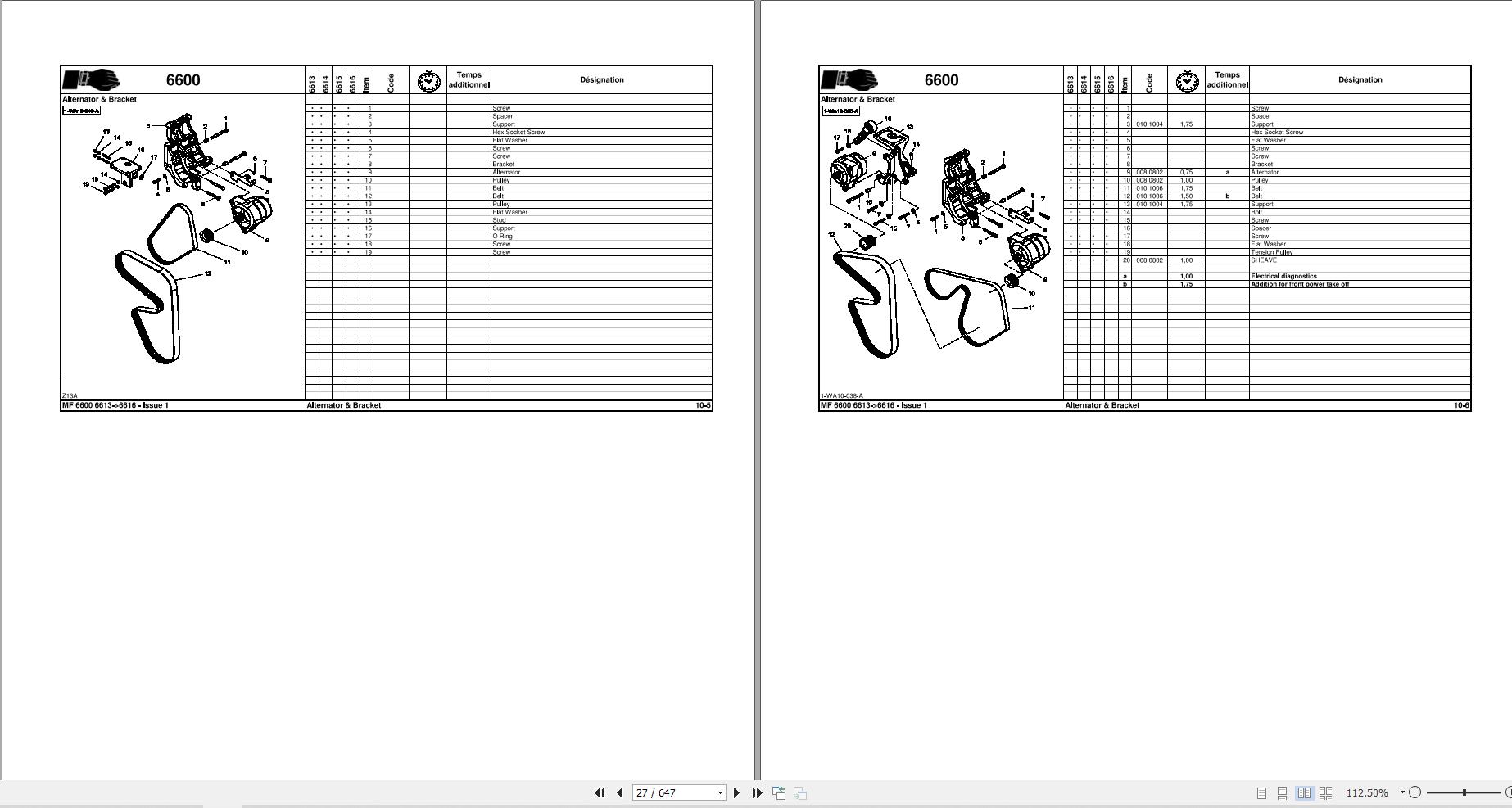 Massey Ferguson 6613 to 6616 Dyna-6 Parts Manual 7060844M2