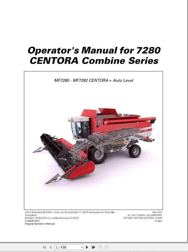 Massey Ferguson 7280 7282 CENTORA Operators Manual
