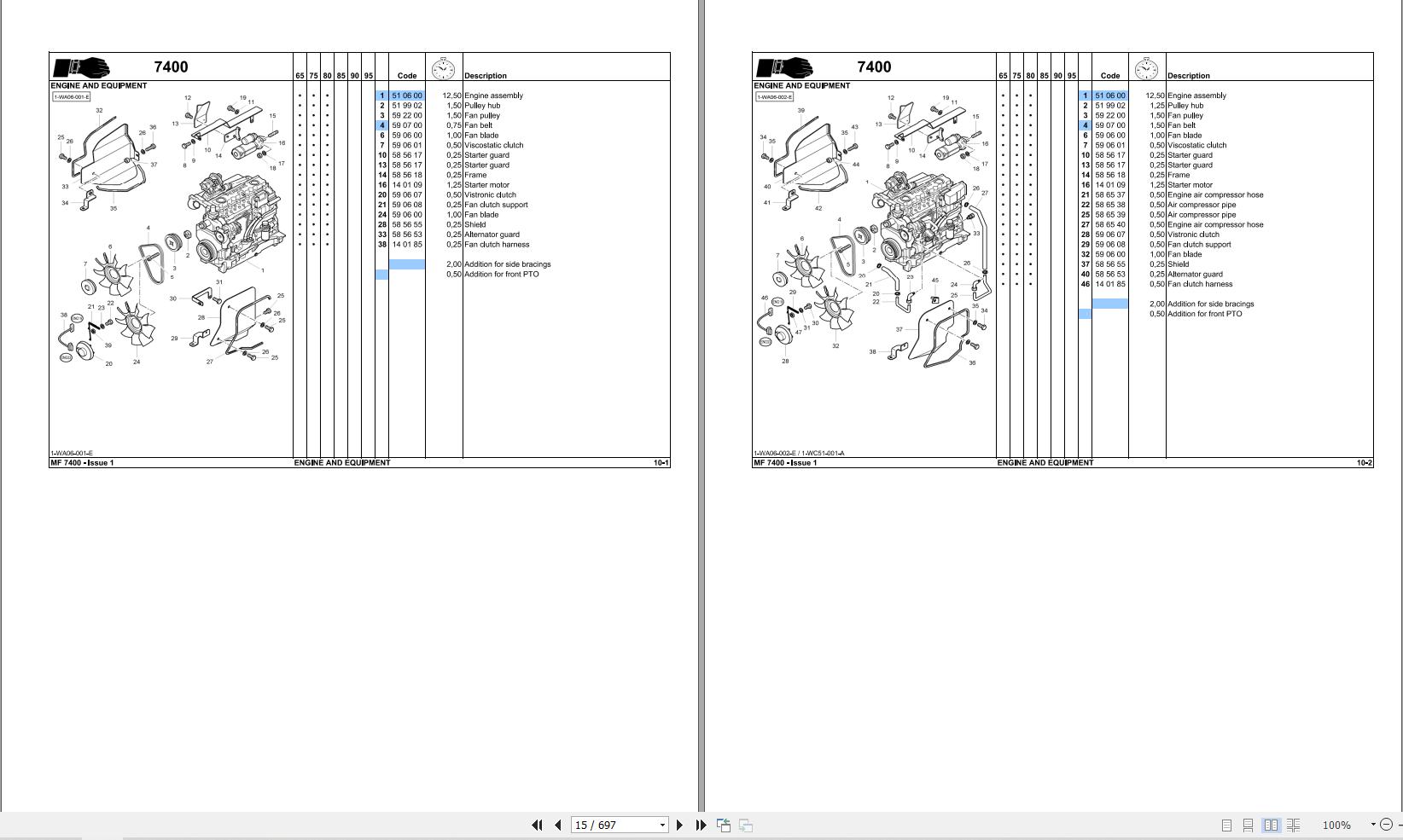 Massey Ferguson 7465 to 7495 Repair Time Schedule 3378688M2