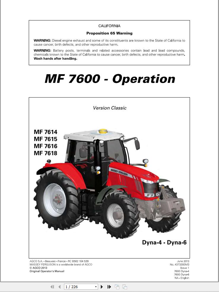 Massey Ferguson 7614 7615 7616 7618 Dyna 4 6 Operation Manual