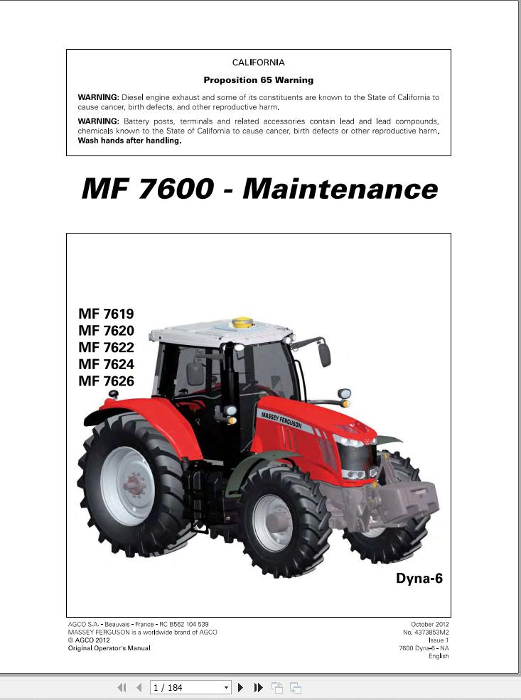 Massey Ferguson 7619 to 7626 Dyna-6 Maintenance Manual 4373853M2
