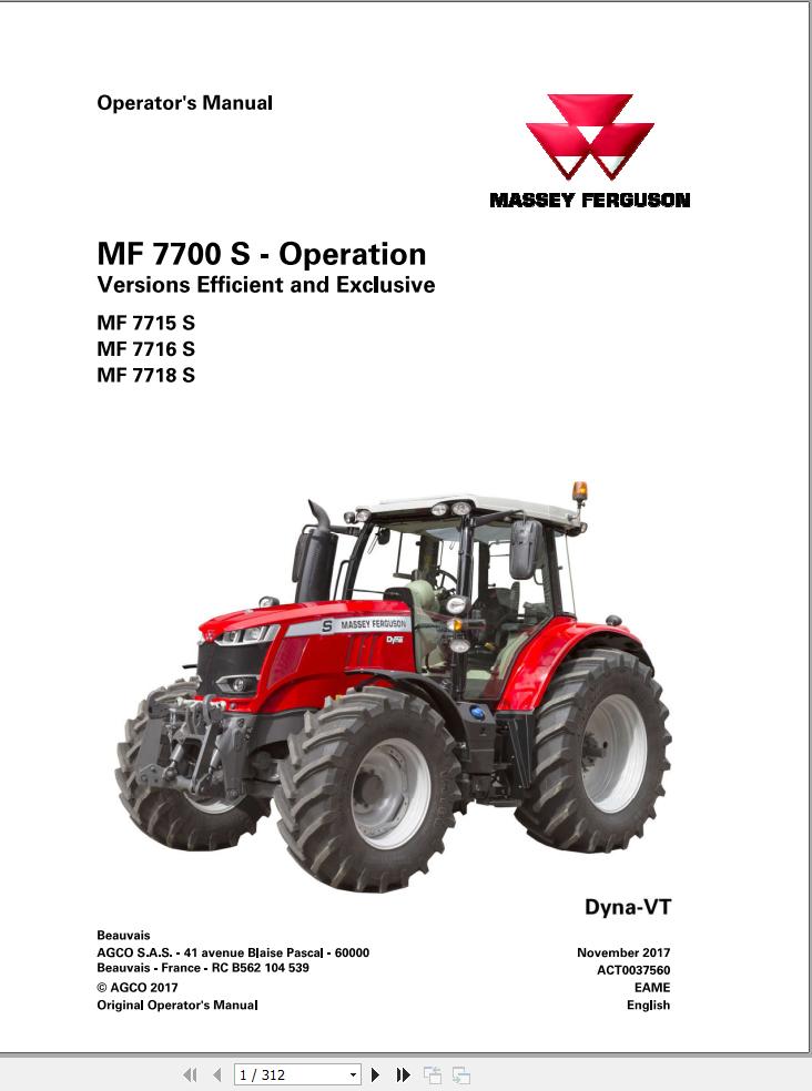 Massey Ferguson 7715S 7716S 7718S Dyna-VT Operation Manual