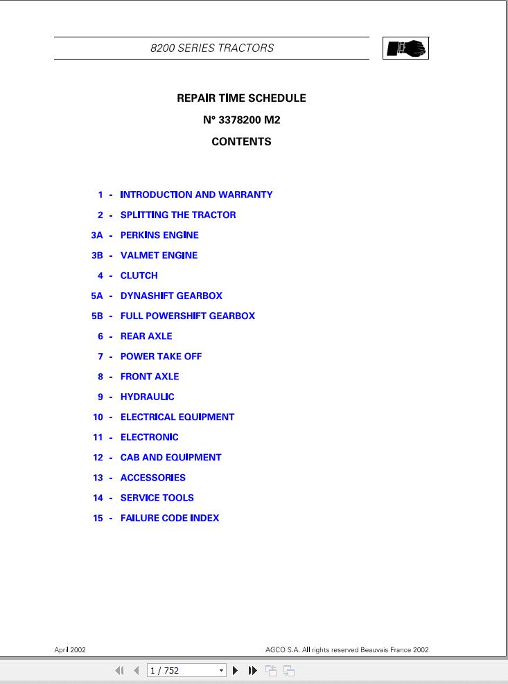 Massey Ferguson 8200 Series Repair Time Schedule 3378200M2