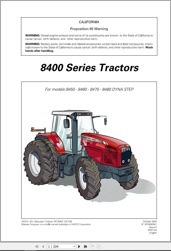 Massey Ferguson 8450 8460 8470 8480 DYNA STEP Operators Manual 3378593M1 (204 Pages)