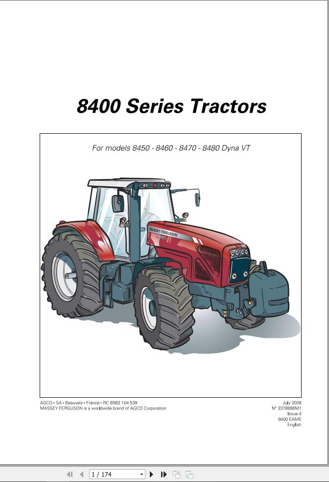 Massey Ferguson 8450 8460 8470 8480 Dyna VT Operators Manual 3378886M1