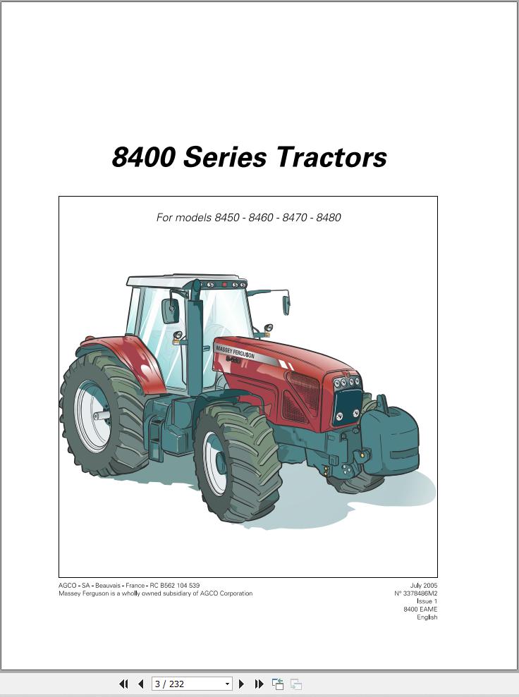 Massey Ferguson 8450 8460 8470 8480 Operators Manual 3378486M2