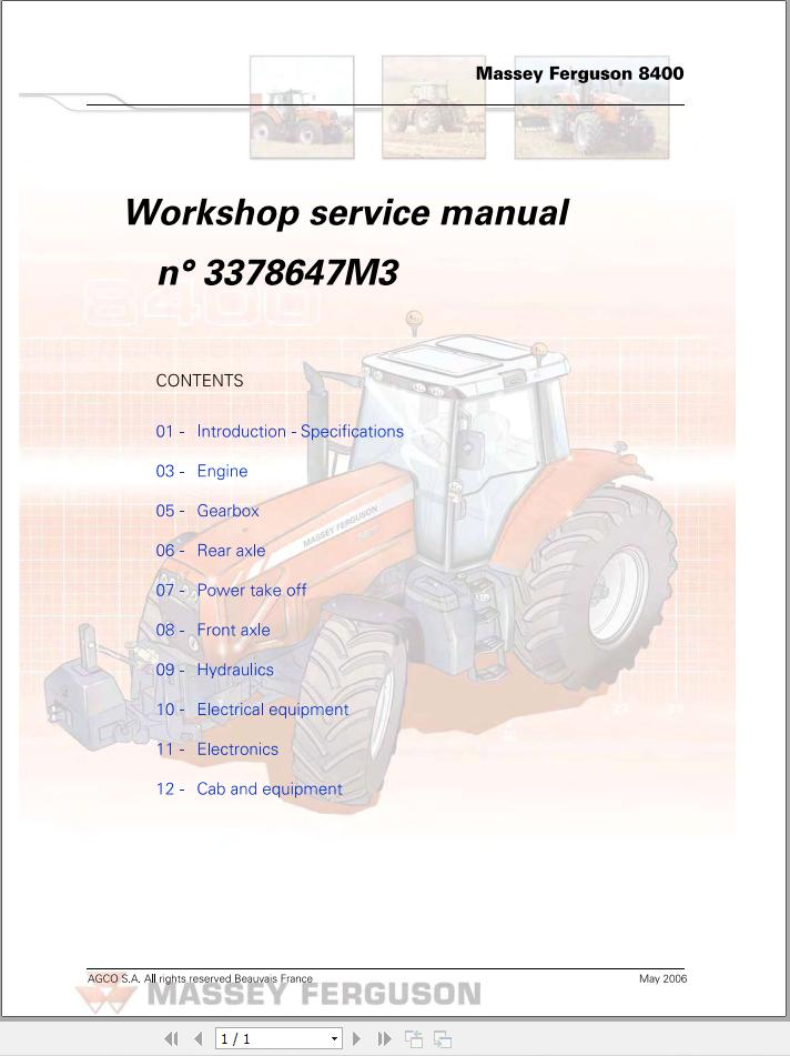 Massey Ferguson 8450 8460 8470 8480 Workshop Service Manual 3378647M3