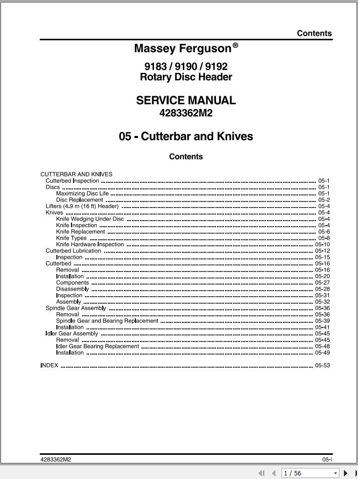 Massey Ferguson 9183 9190 9192 Service Manual 4283362M2