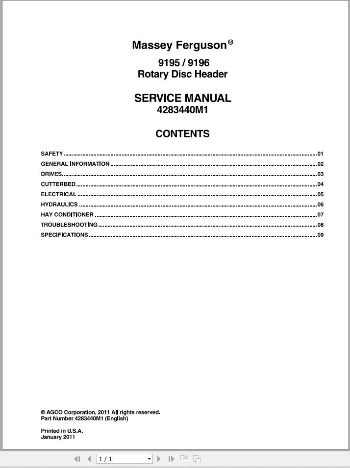 Massey Ferguson 9195 9196 Service Manual 4283440M1