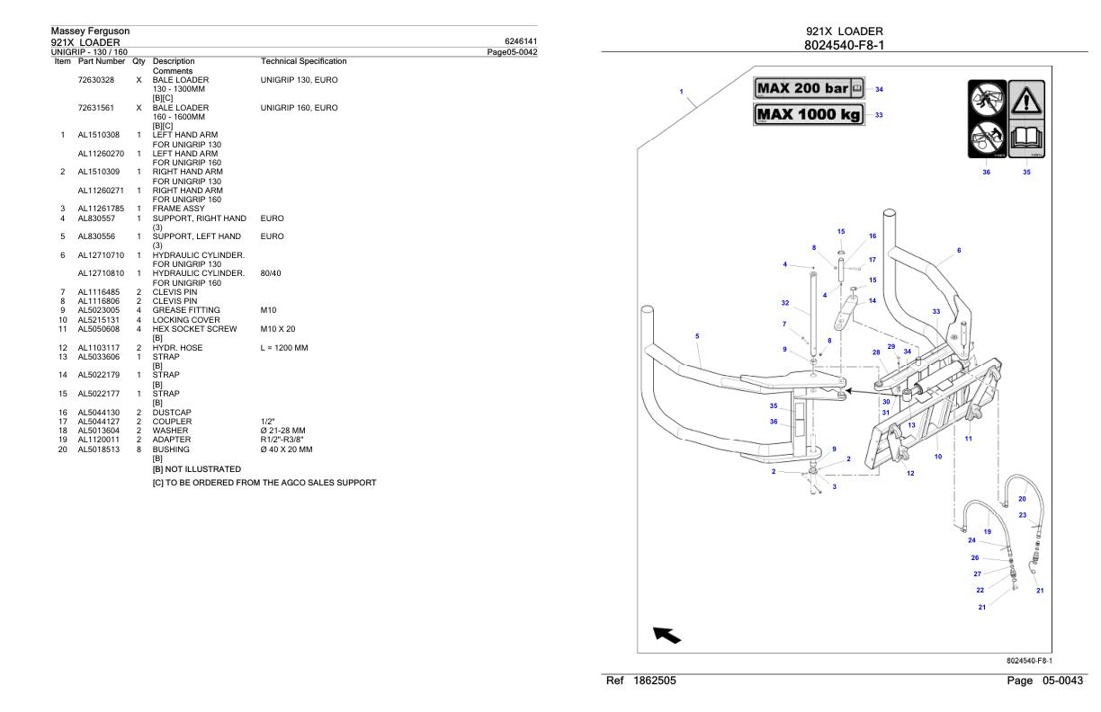 Massey Ferguson 921X Parts Catalog 6246141