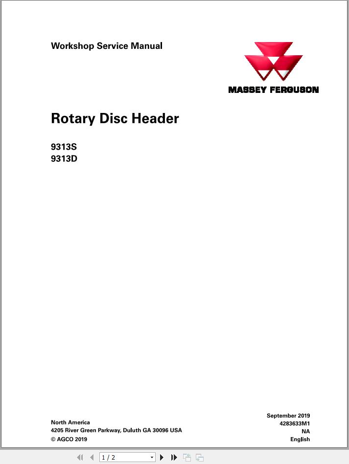 Massey Ferguson 9313S 9313D Service Manual 4283633M1