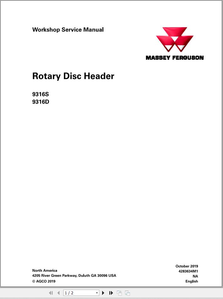 Massey Ferguson 9316S 9316D Service Manual 4283634M1