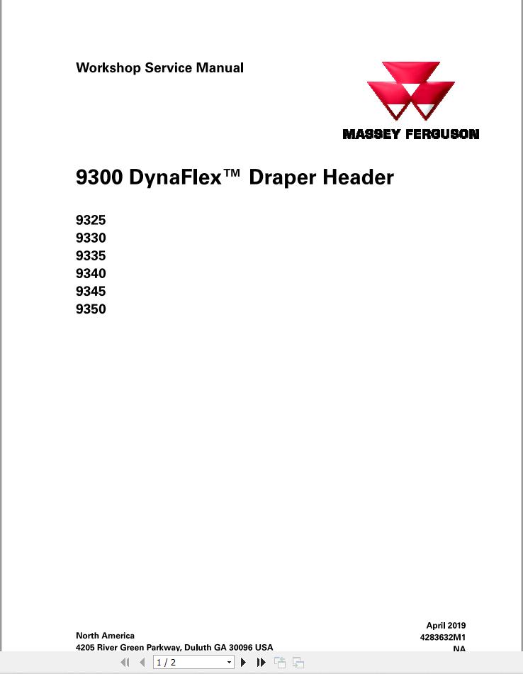 Massey Ferguson 9325 to 9350 Workshop Service Manual 4283632M1
