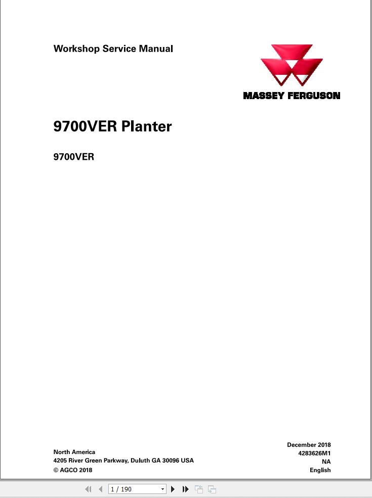 Massey Ferguson 9700VER Service Manual 4283626M1