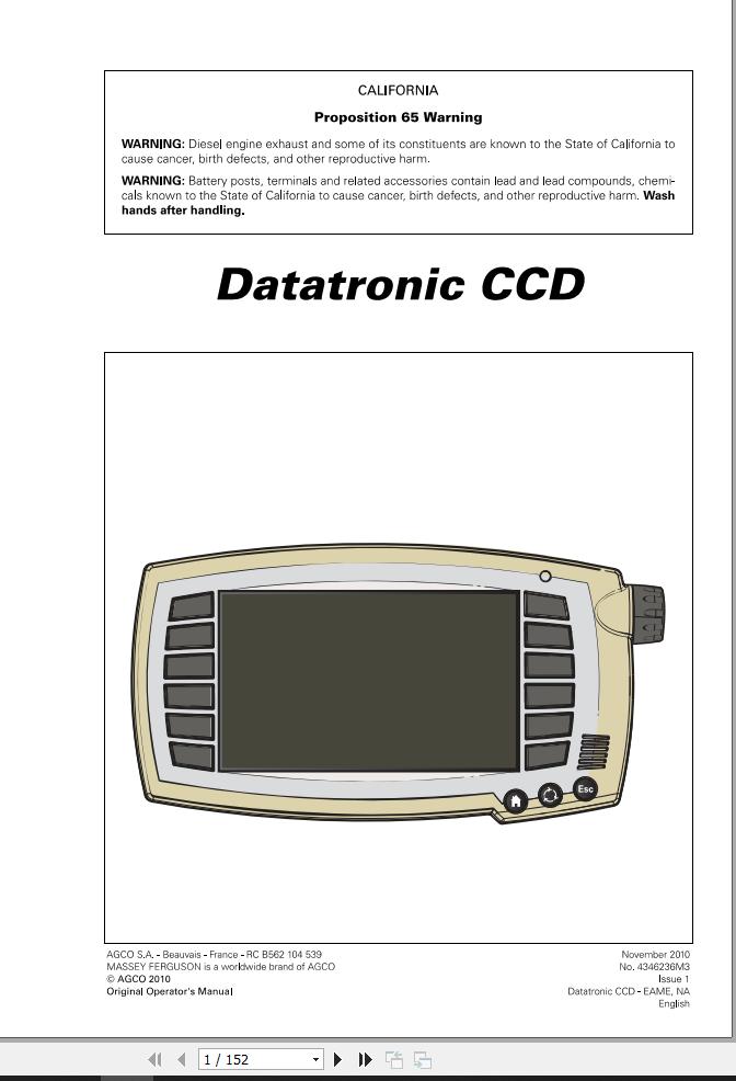 Massey Ferguson Datatronic CCD Operators Manual 4346236M3