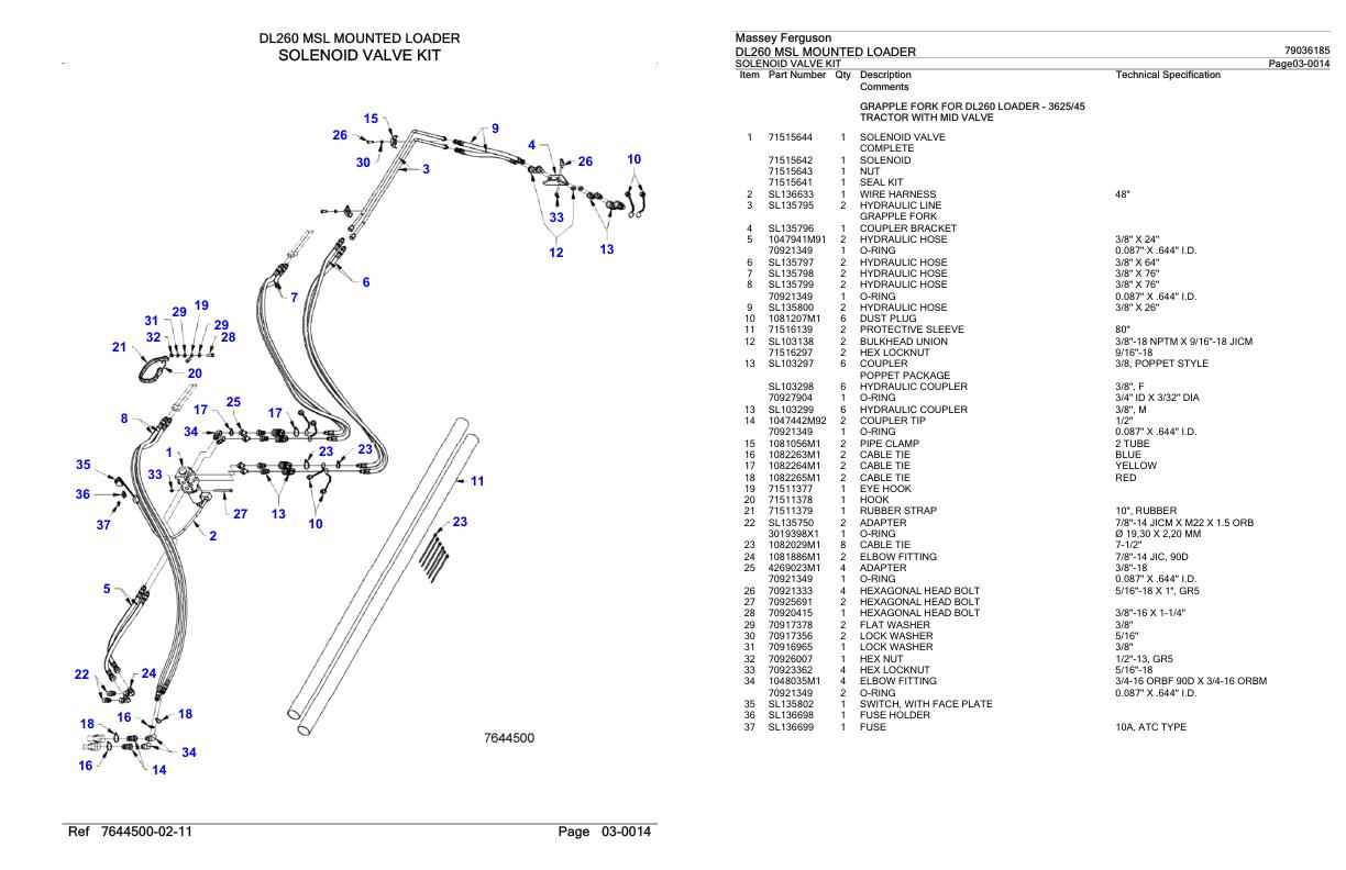 Massey Ferguson DL260 MSL Parts Catalog 79036185