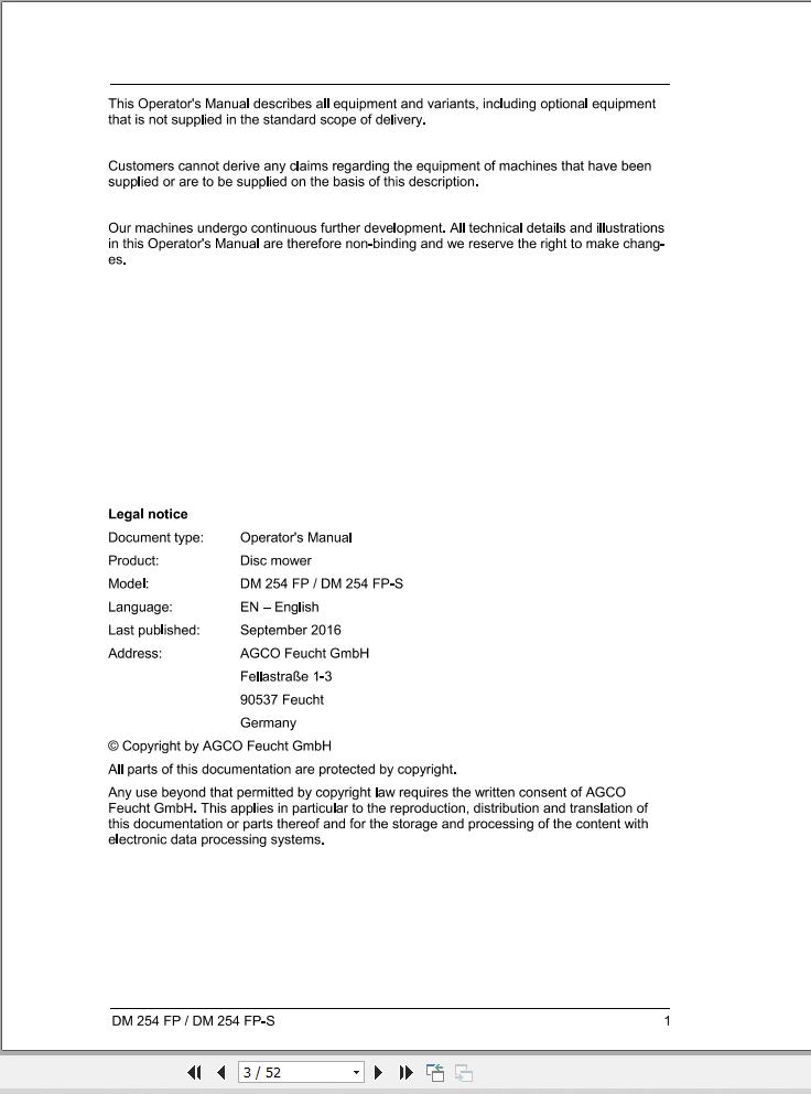 Massey Ferguson DM254FP DM254FPS Operators Manual FEL1719640101