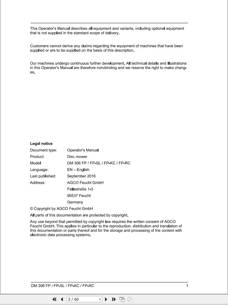 Massey Ferguson DM306FP to DM306FP-RC Operators Manual