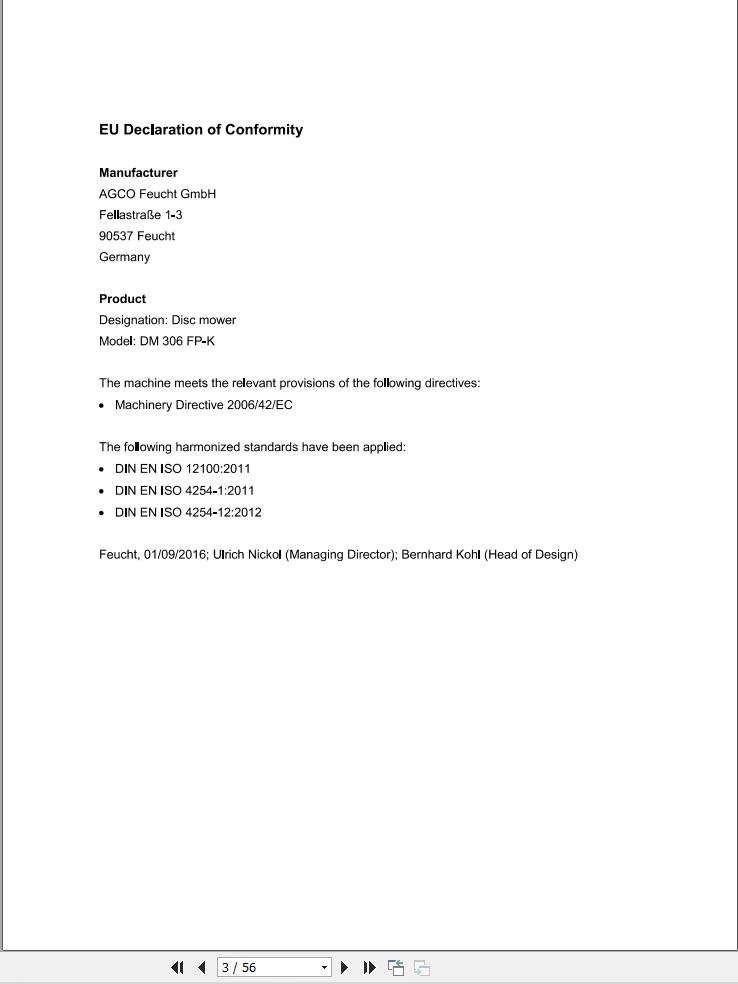 Massey Ferguson DM306FPK Operators Manual FEL1388450101