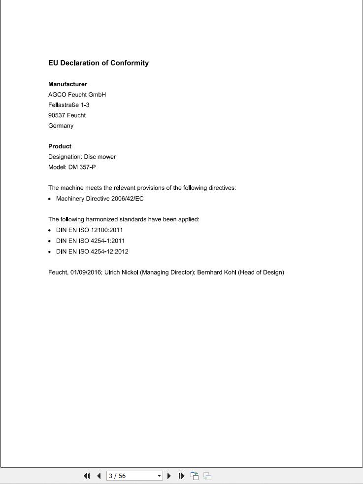 The Bookmarks of Massey Ferguson DM357-P Operators Manual: