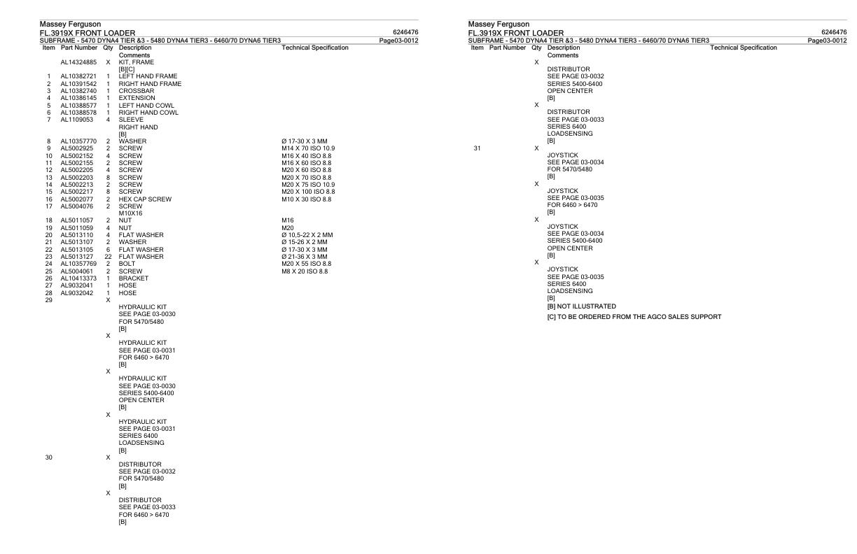 Massey Ferguson FL.3919X Parts Catalog 6246476