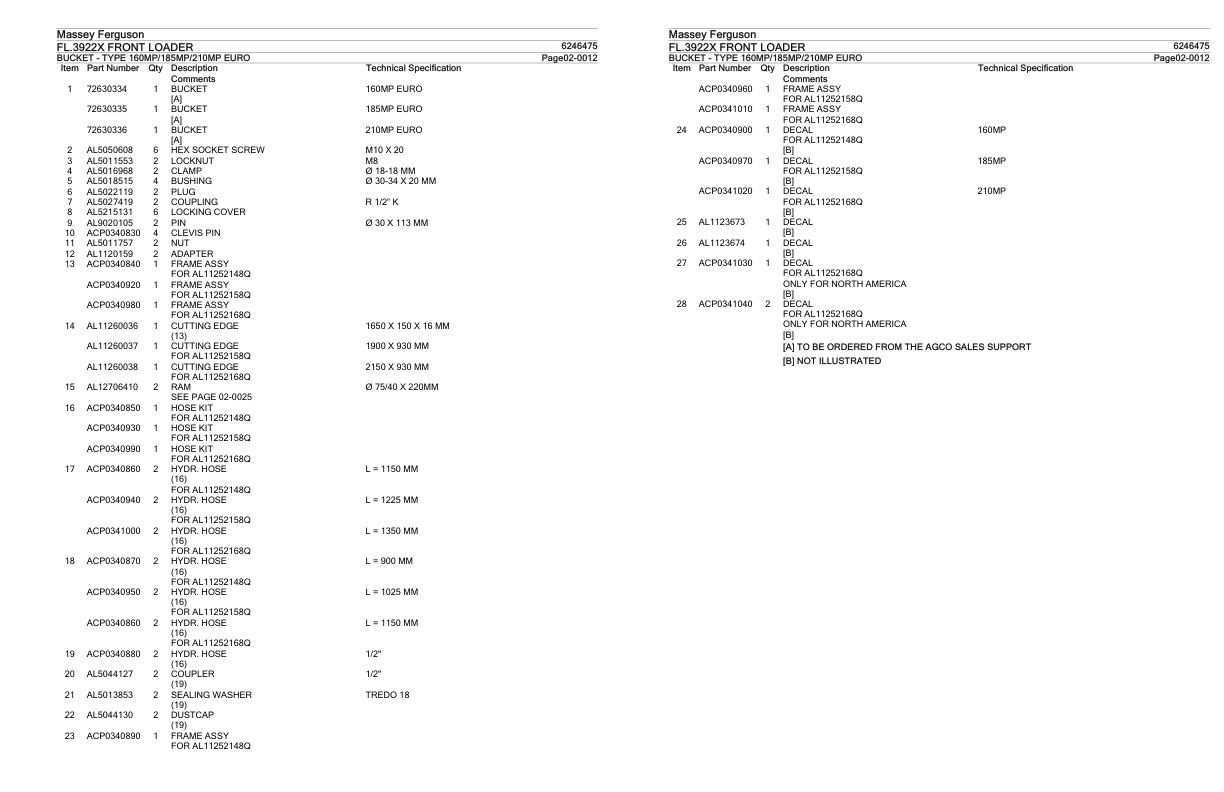 Massey Ferguson FL.3922X Parts Catalog 6246475
