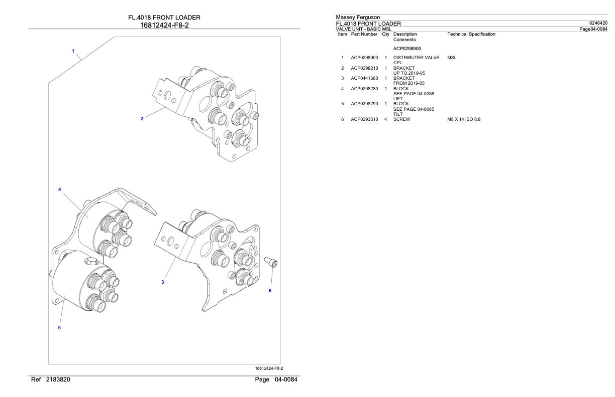 Massey Ferguson FL.4018 Parts Catalog 6246420