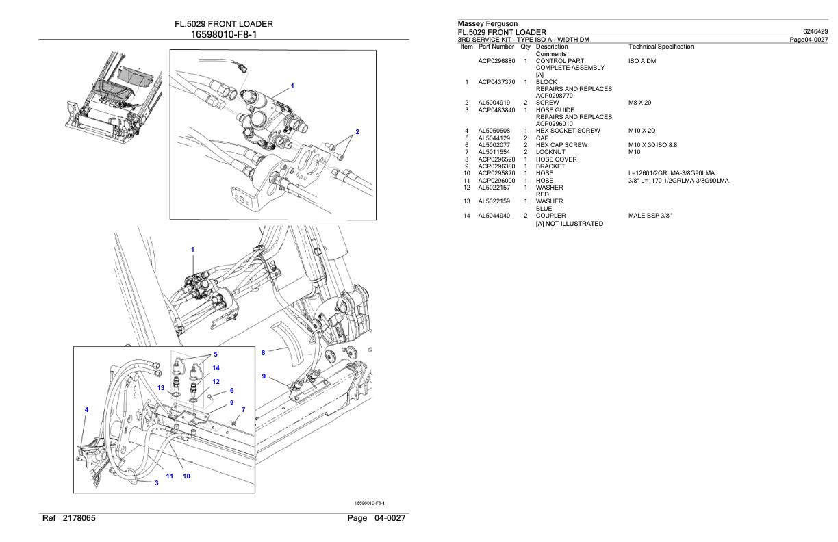 Massey Ferguson FL.5029 Parts Catalog 6246429