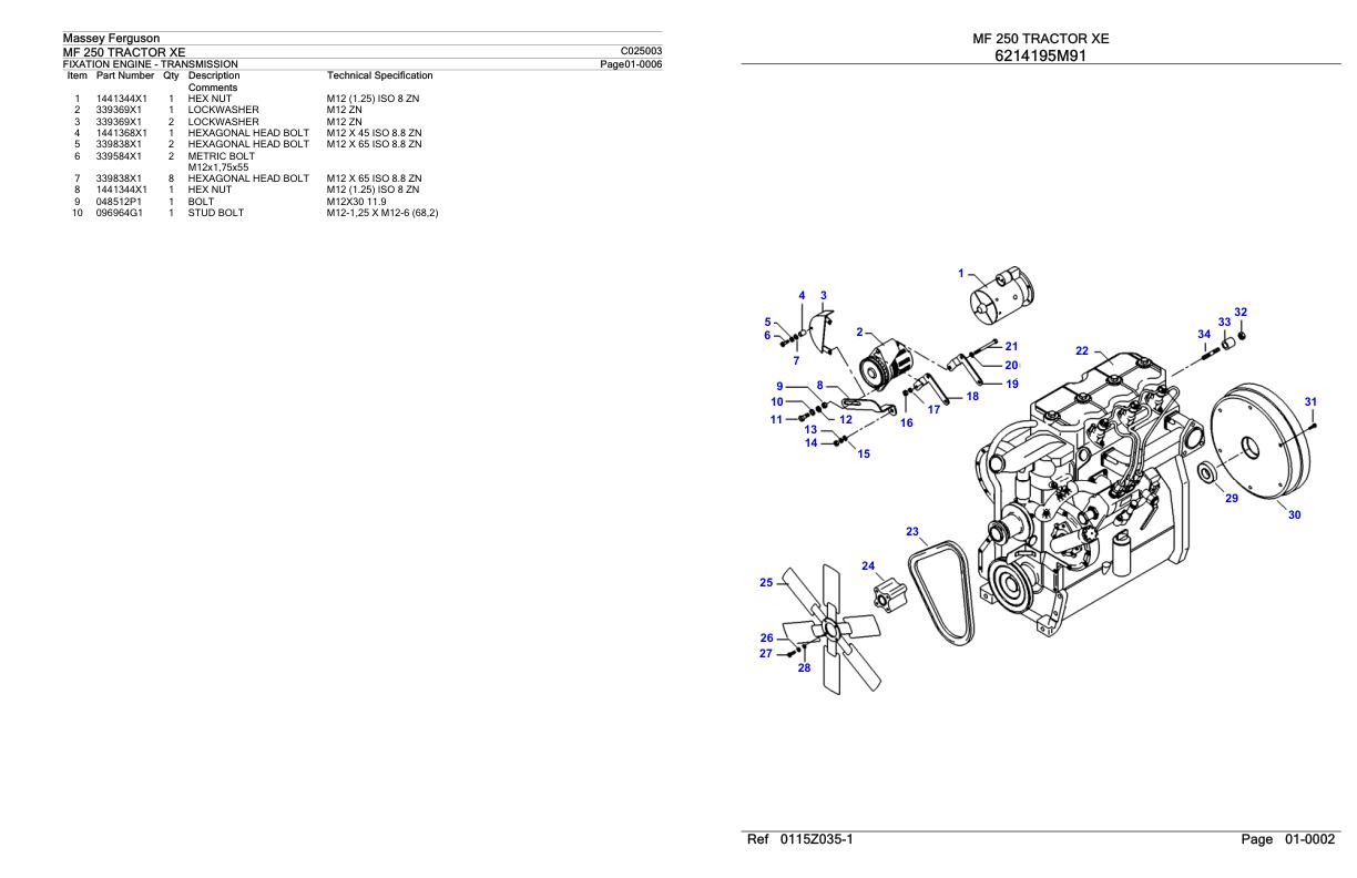 Massey Ferguson MF 250 Parts Catalog C025003