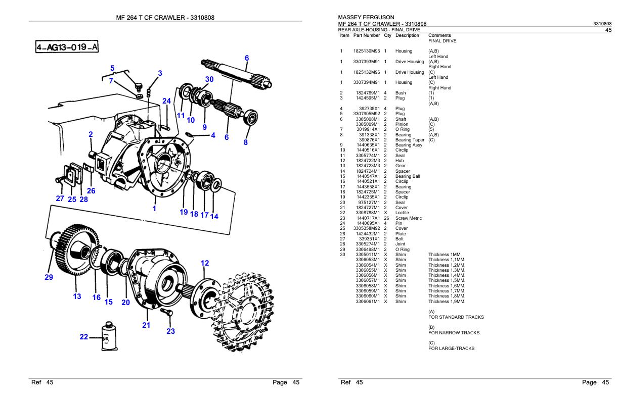 Massey Ferguson MF 264 T CF Crawler Parts Catalog 3310808