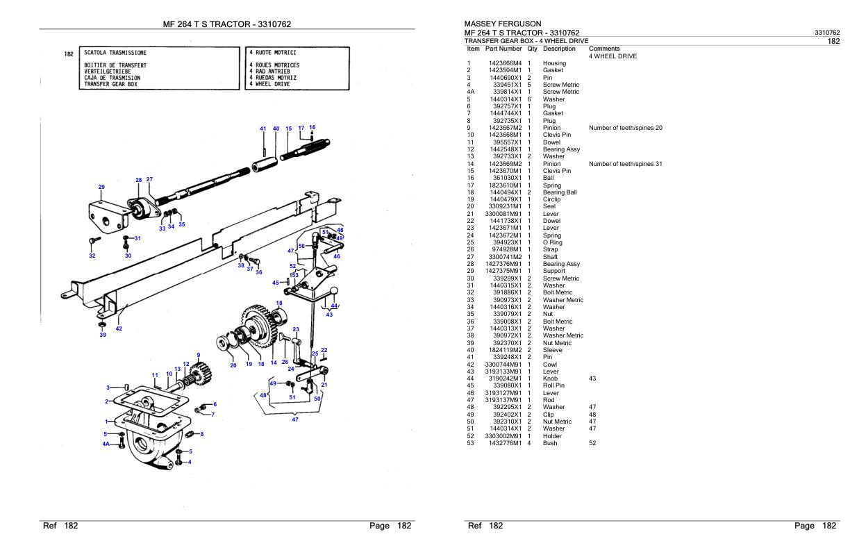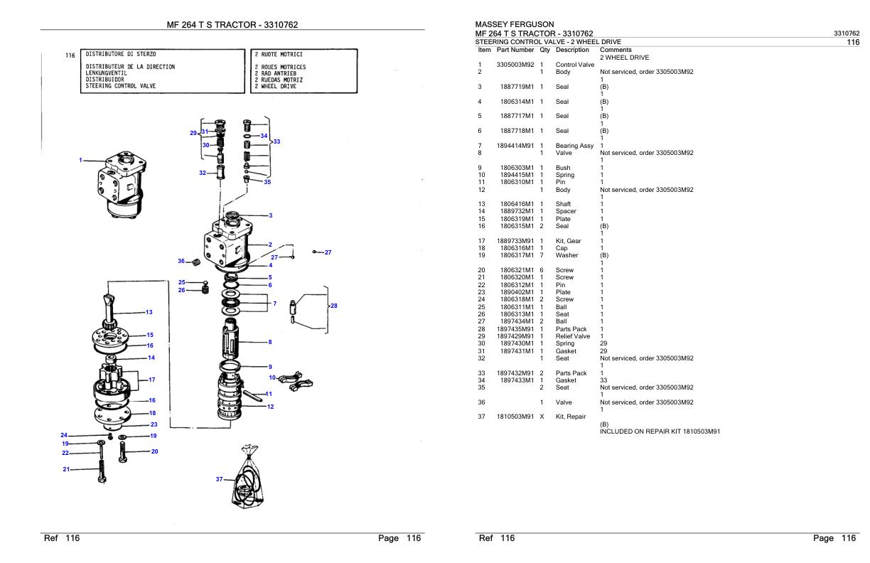 Massey Ferguson MF 264 T S Parts Catalog 3310762