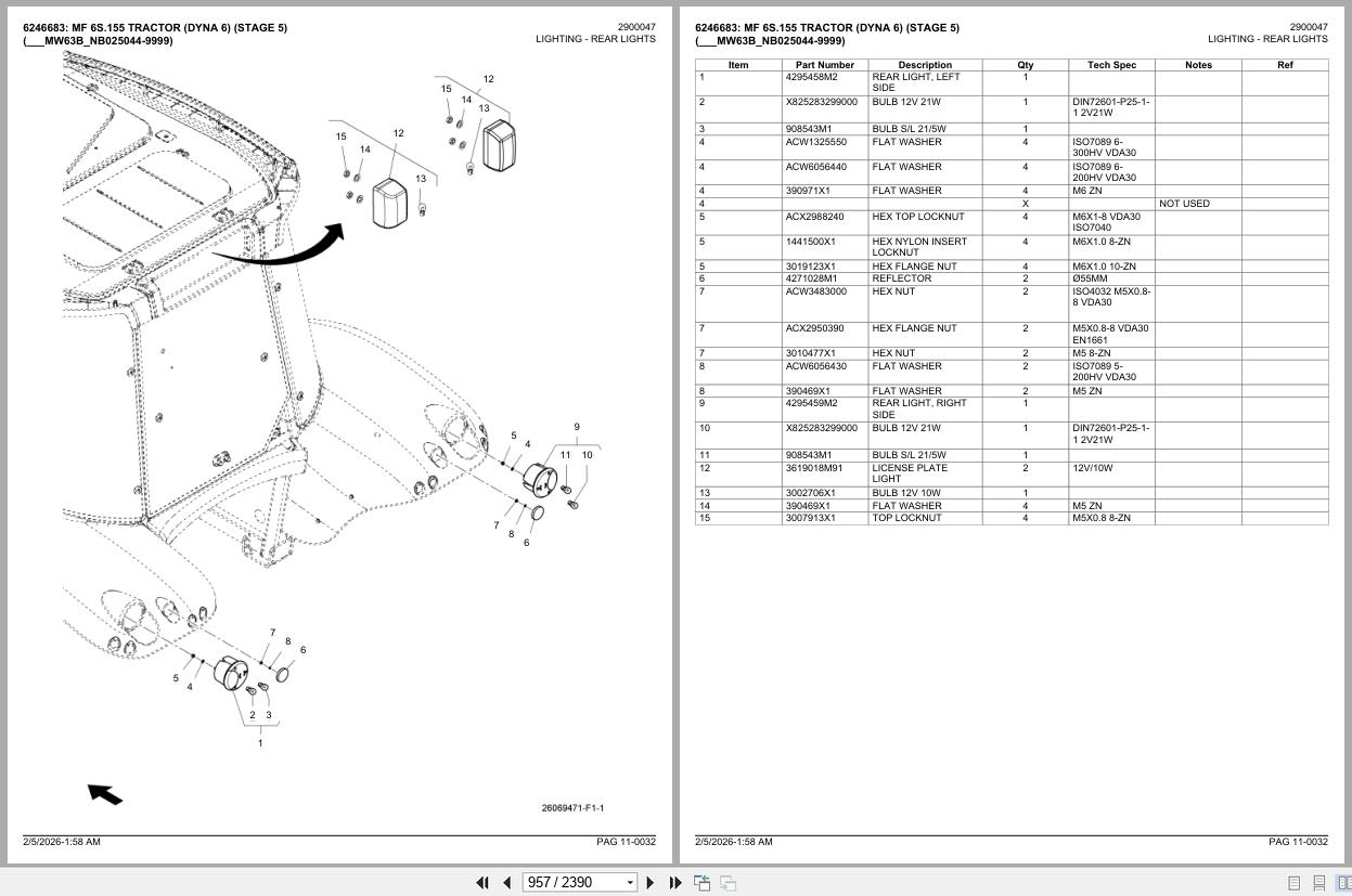 Massey Ferguson MF 6S.155 DYNA 6 STAGE 5 Parts Catalog PDF