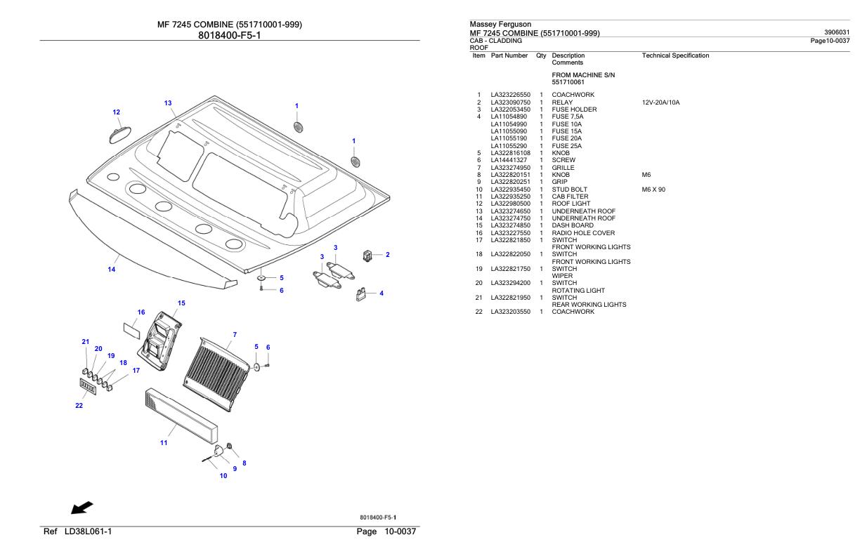 Massey Ferguson MF 7245 Parts Catalog 3906031