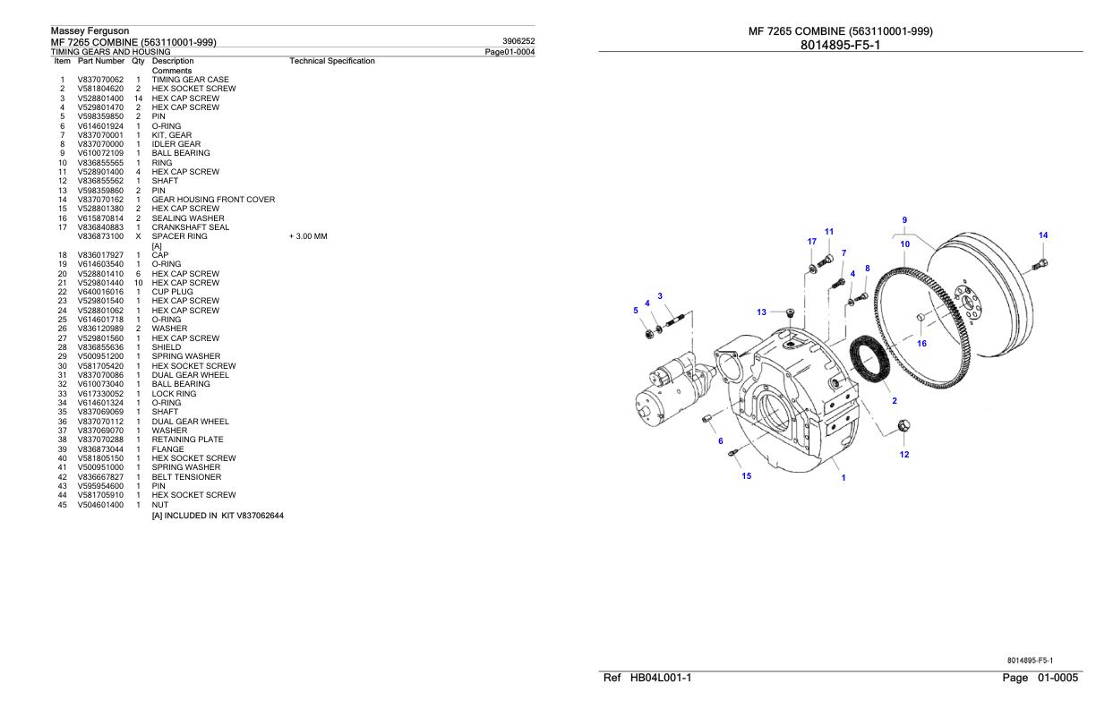 Massey Ferguson MF 7265 Parts Catalog 3906252
