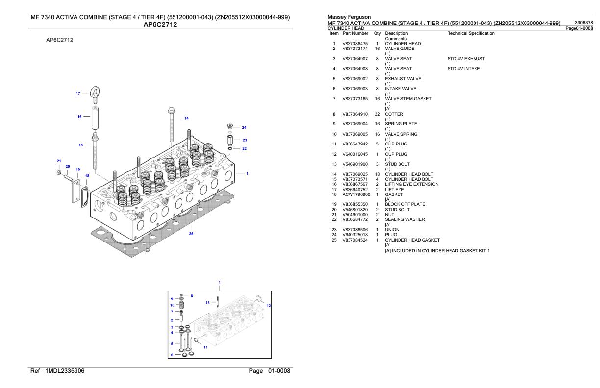 Massey Ferguson MF 7340 Activa (Stage 4 Tier 4F) Parts Catalog 3906378