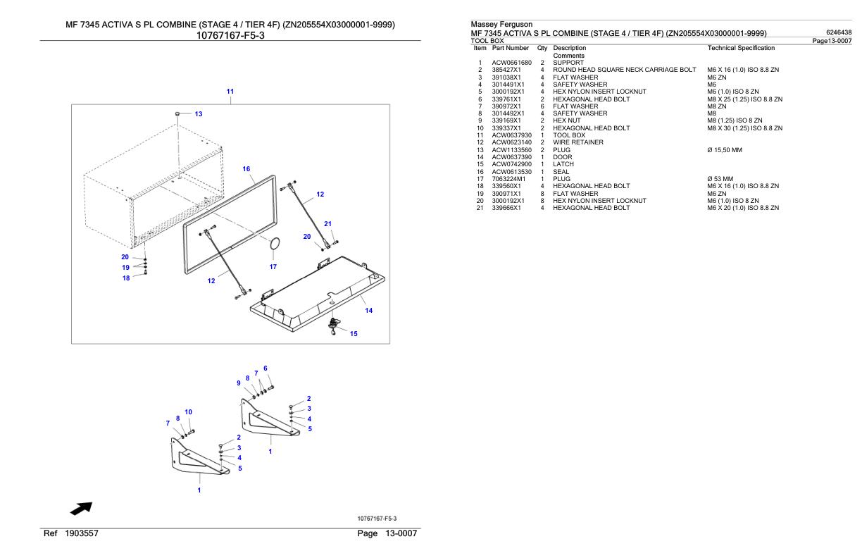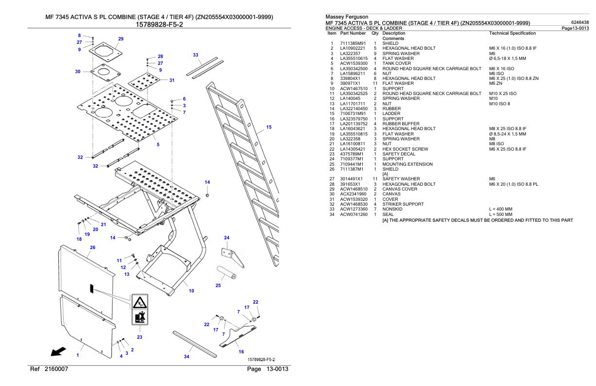 Massey Ferguson MF 7345 Activa S PL (Stage 4 Tier 4F) Parts Catalog 6246438