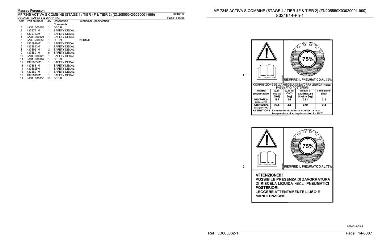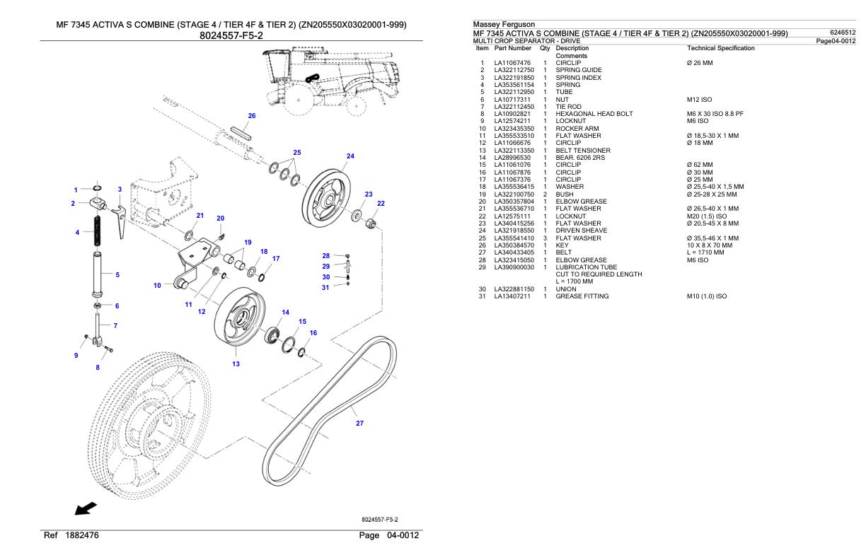 Massey Ferguson MF 7345 Activa S (Stage 4 Tier 4F & Tier 2) Parts Catalog 6246512