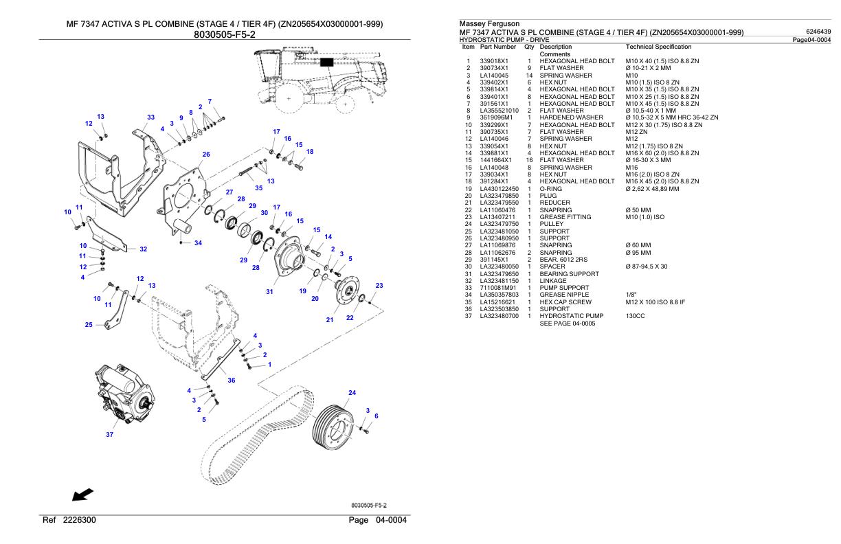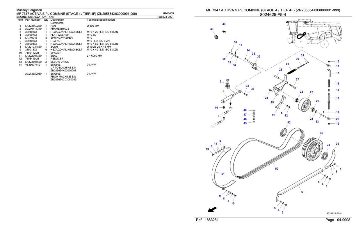 Massey Ferguson MF 7347 Activa S PL (Stage 4 Tier 4F) Parts Catalog 6246439