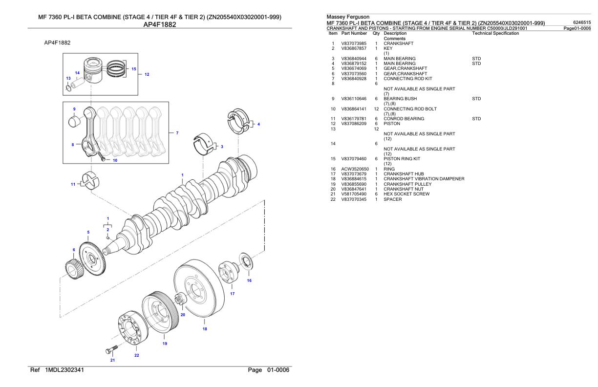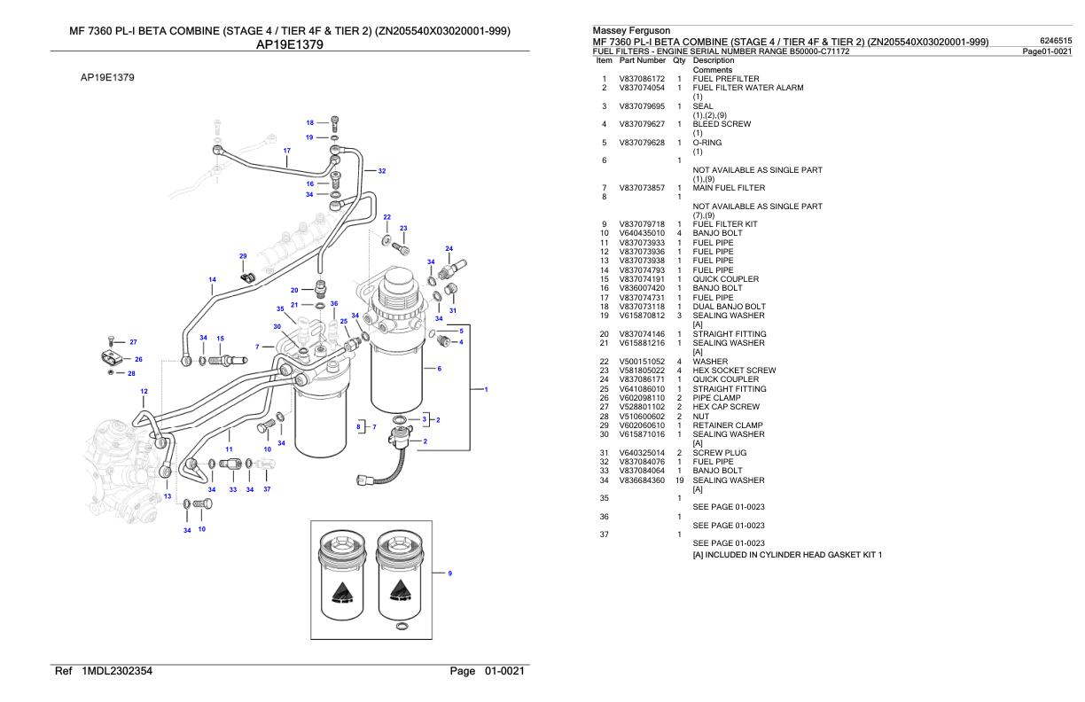 Massey Ferguson MF 7360 PL-I Beta (Stage 4 Tier 4F & Tier 2) Parts Catalog 6246515
