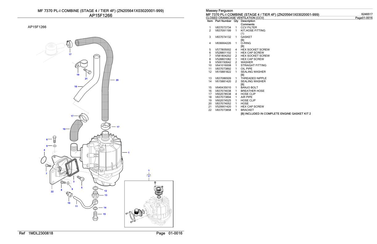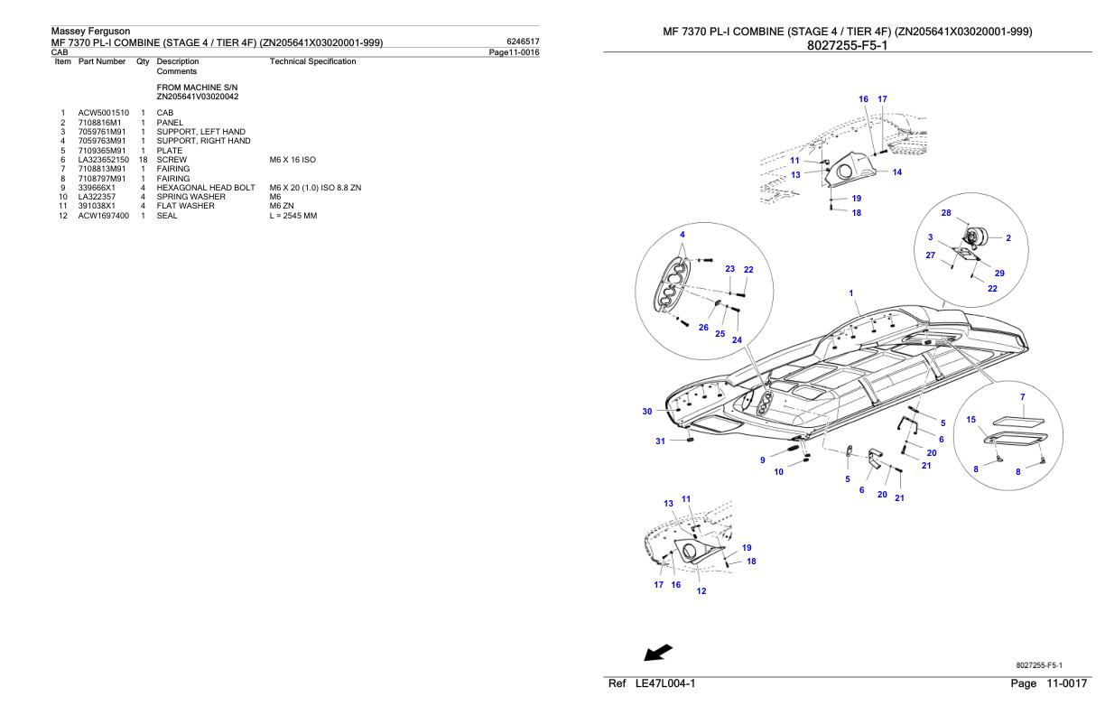 Massey Ferguson MF 7370 PL-I (Stage 4 Tier 4F) Parts Catalog 6246517
