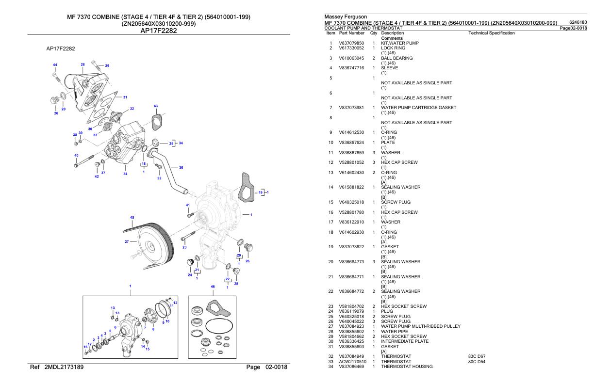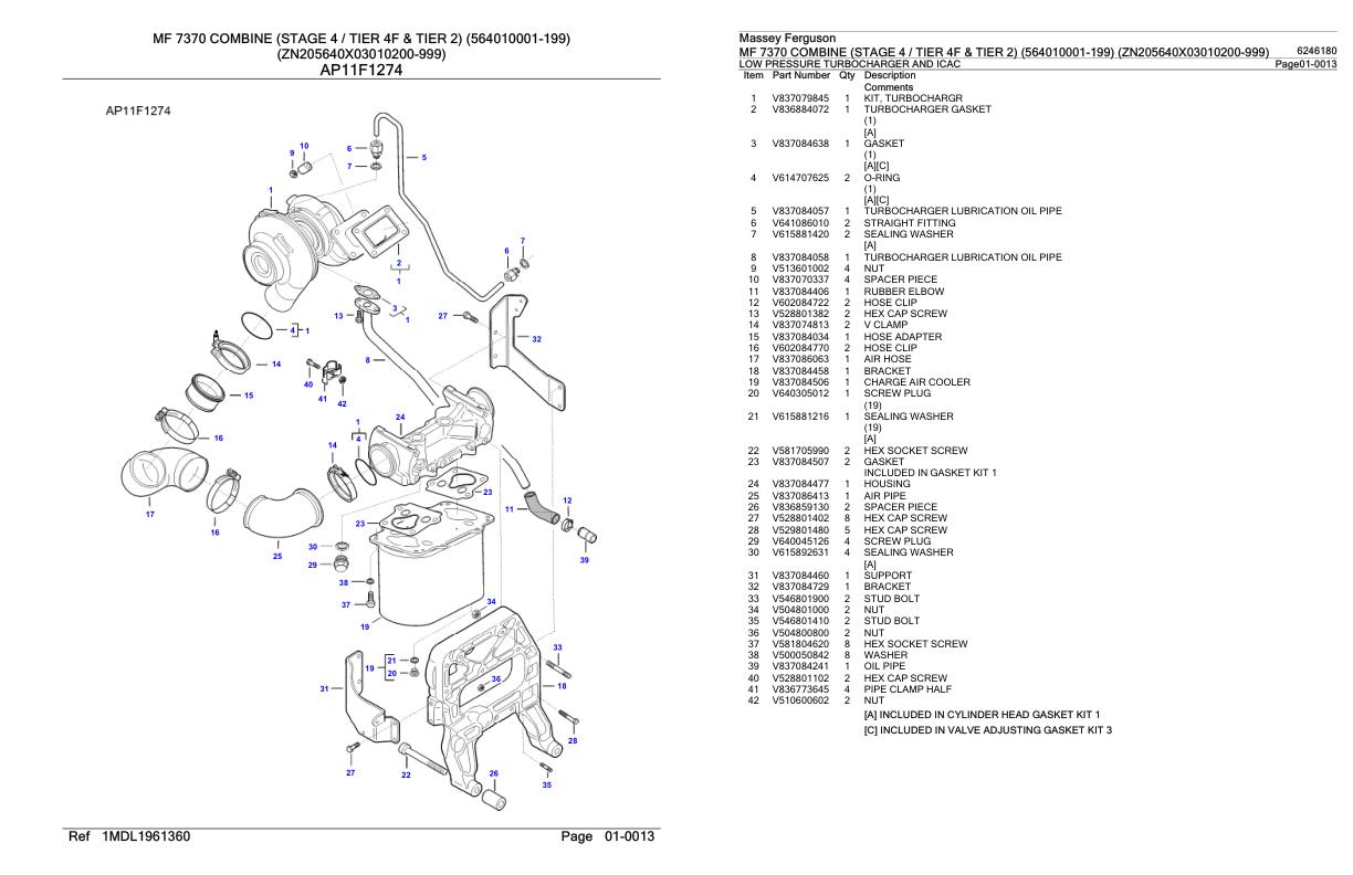 Massey Ferguson MF 7370 (Stage 4 Tier 4F & Tier 2) Parts Catalog 6246180